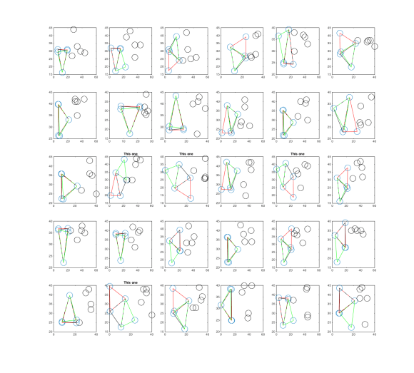 In the plot above, I have labeled the plots that converged to the triangle formation with the title “this one”. In addition, the five black circles denote the initial positions of the players on the court before they fill the triangles in the offense. One sees just by the diagram above, how difficult such a problem is to solve mathematically, even through a numerical approach. Running more trials would perhaps yield better results, but, it works! I am truly fascinated by this. In the coming days, I will work on optimizing the numerical algorithm, and post my updates as they come.