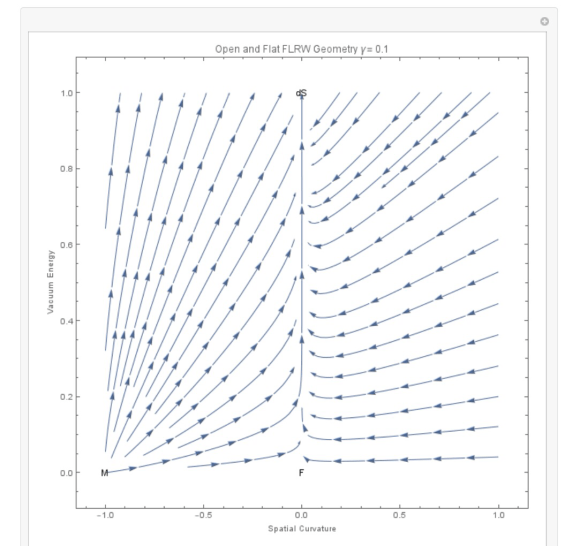 In these simulations, we present phase plots of solutions to the Einstein field equations for spatially homogeneous and isotropic flat, hyperbolic, and closed universe geometries. The different points are: